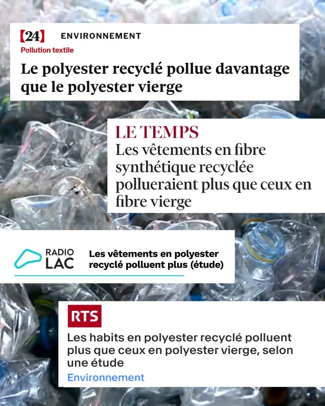 Des recherches menées à l’université Çukurova en Turquie, publiées par l’ONG Changing Markets, montrent que les vêtements en fibres synthétiques recyclées libèrent davantage de microplastiques lors du lavage : jusqu’à 55 % de plus que le polyester vierge, avec des particules 20 % plus petites, donc plus faciles à disperser dans l’environnement. Sachant qu’un seul cycle de lavage peut libérer jusqu’à 900 000 fibres dans l’eau.
